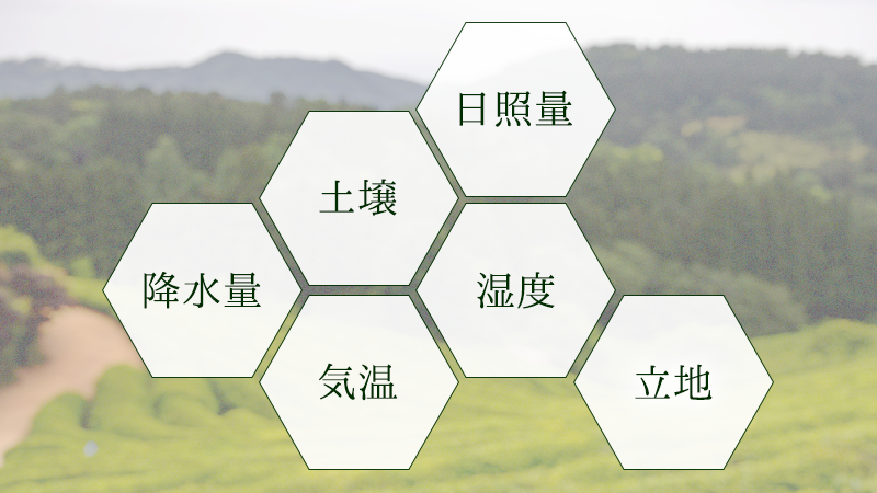 テロワールとは、ワインなどの品種における生育地の地理、地勢、気候などが植物に特徴を与えることから、「土地の個性」という意味をもちます。