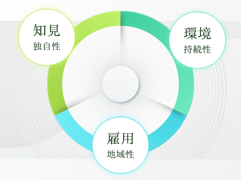 地球環境、社会環境、労働環境等を考慮し地域に根ざした自主基準を設け、世界品質を目指します。